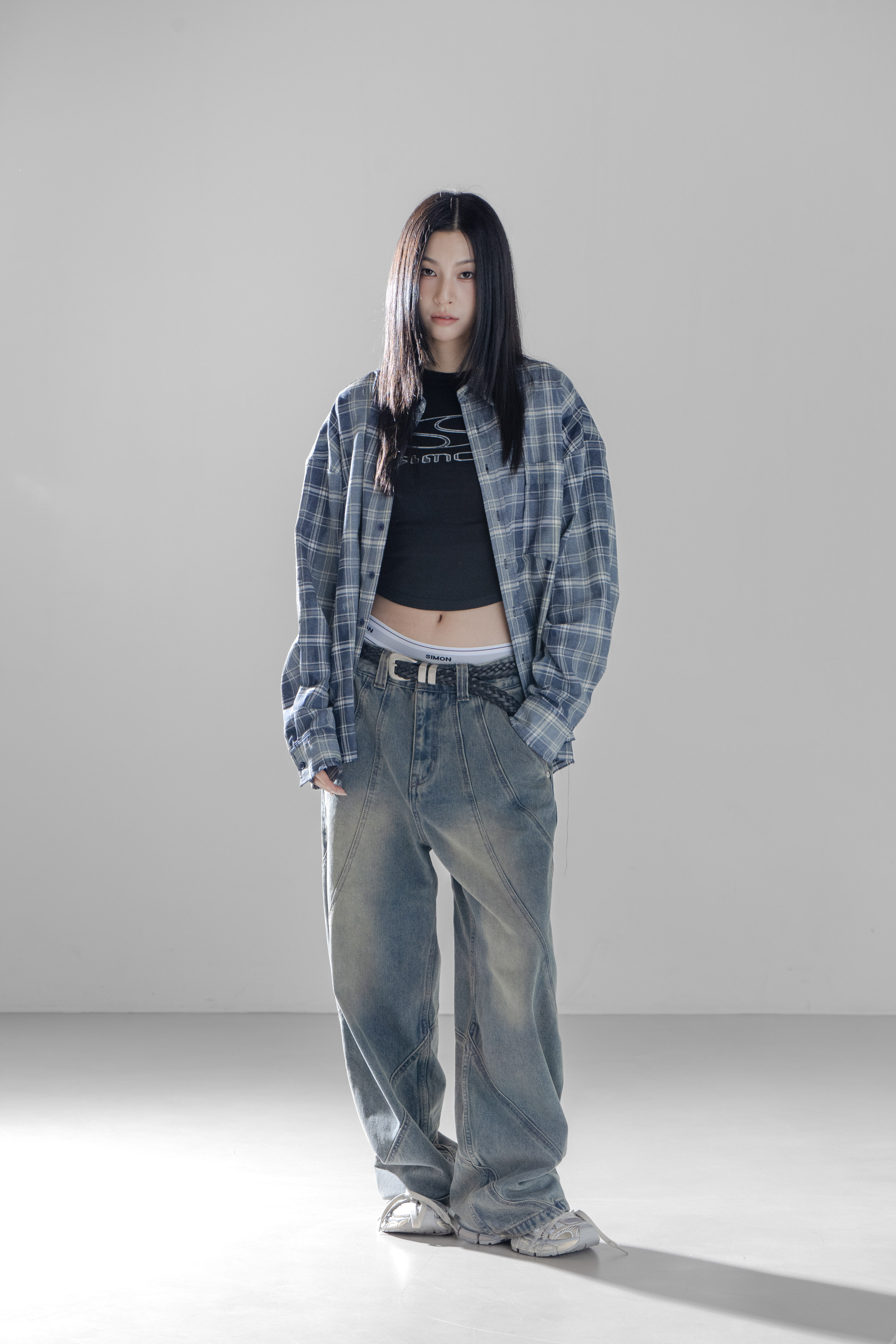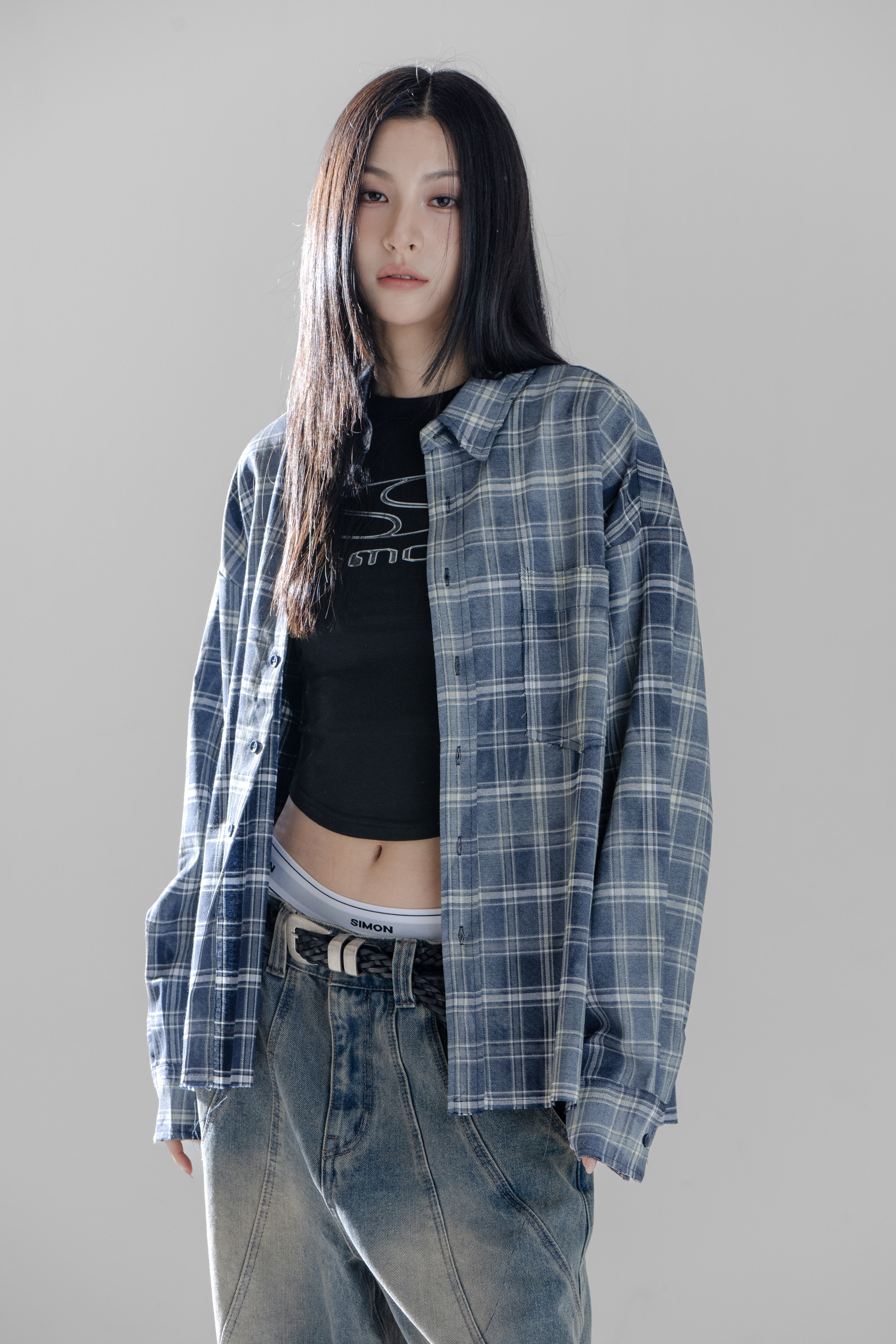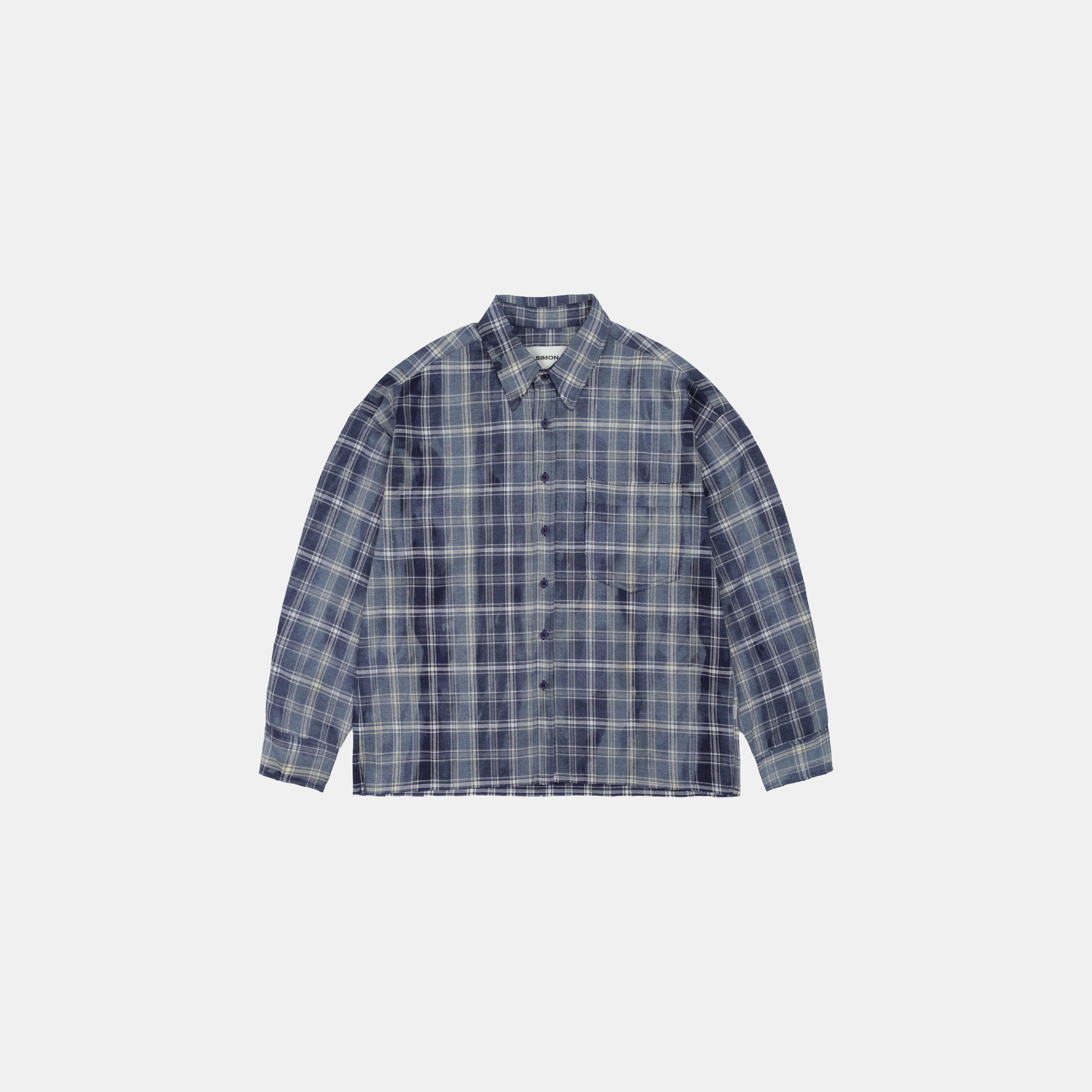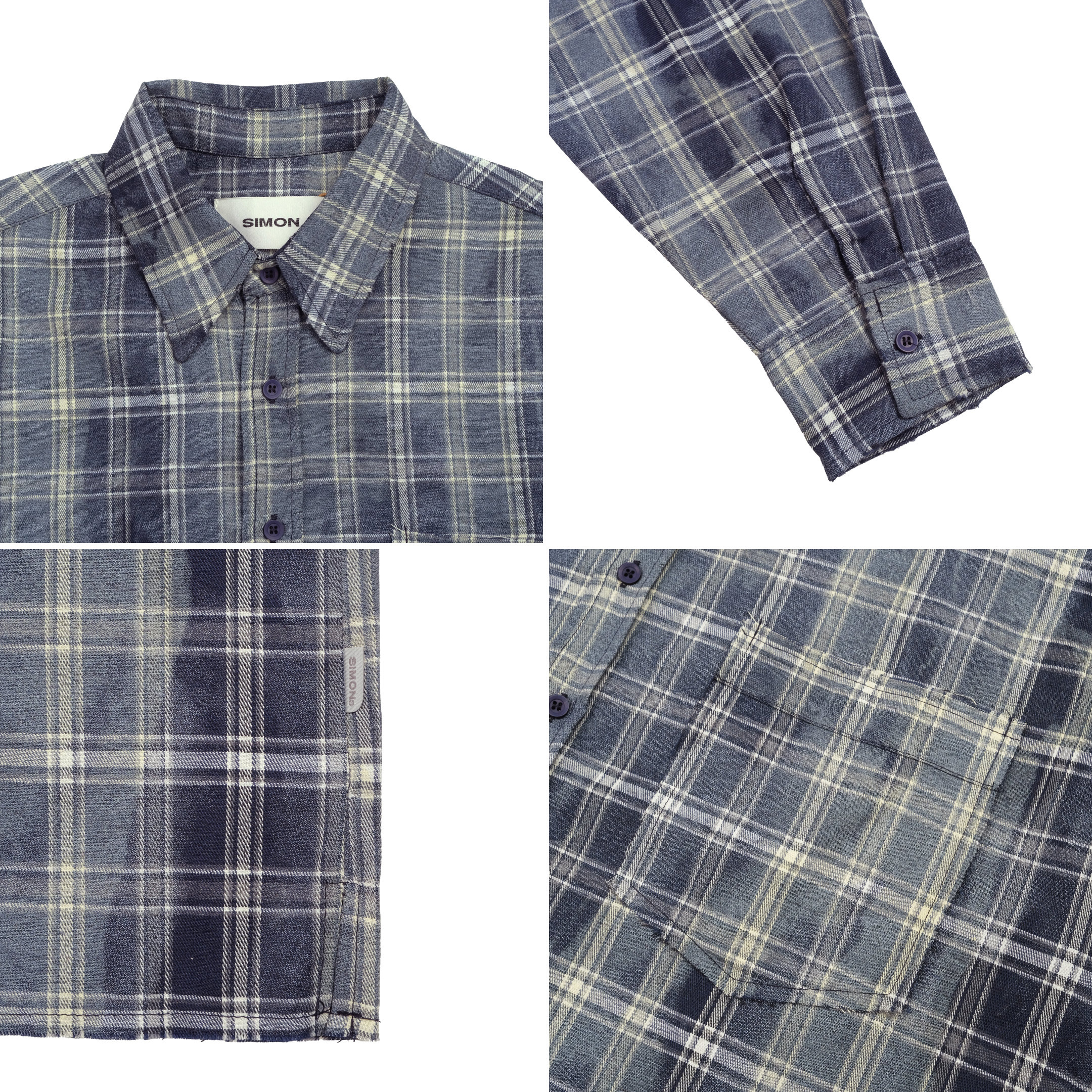 SIMON MADE TL-2420-1 VINTAGE 水洗 做舊 油汙 格紋 襯衫-舊化藍