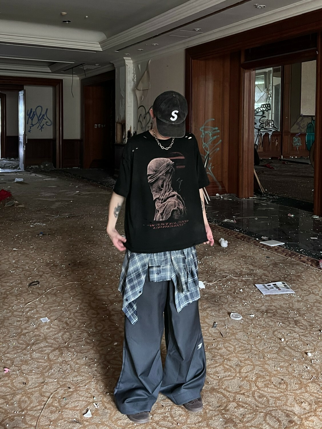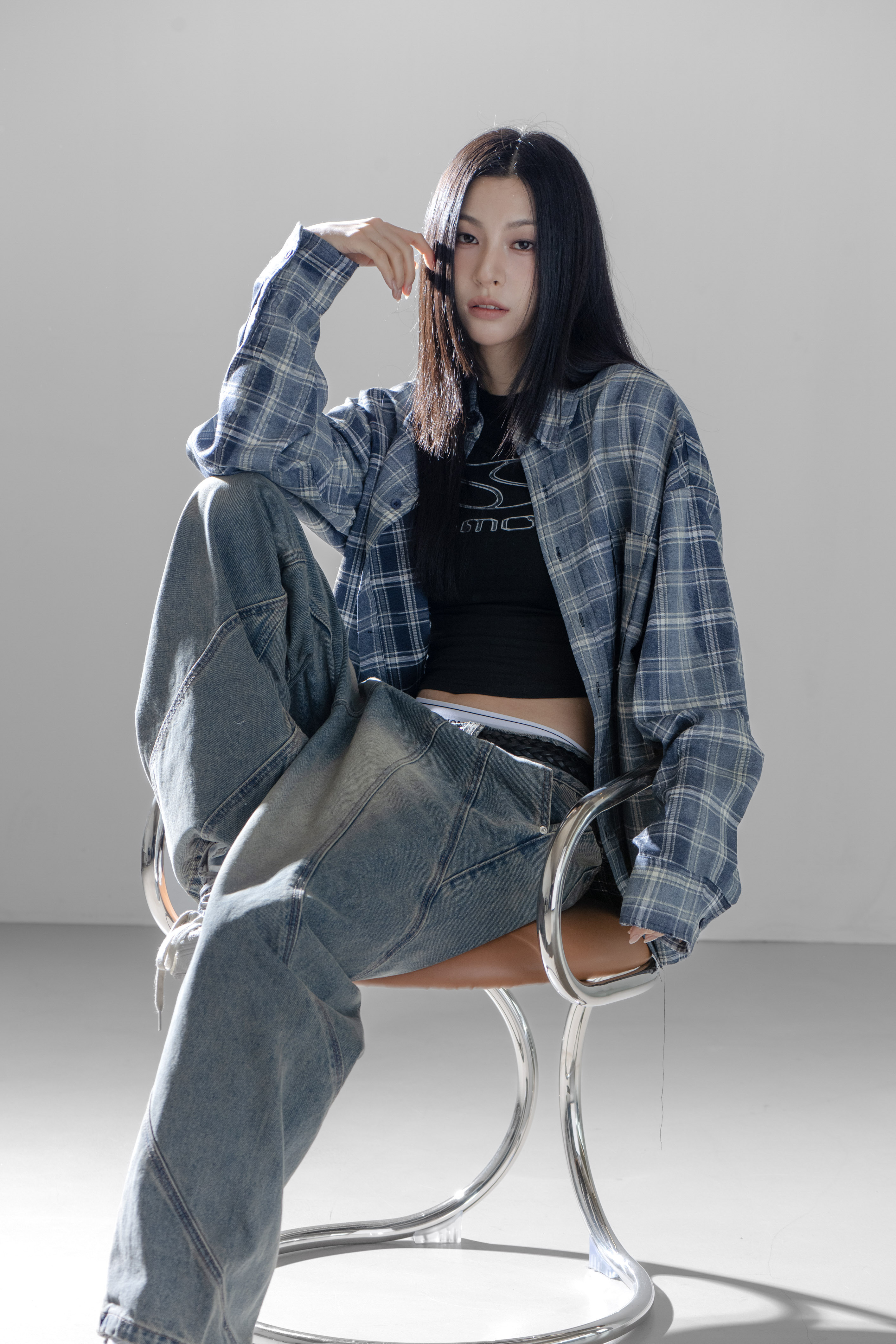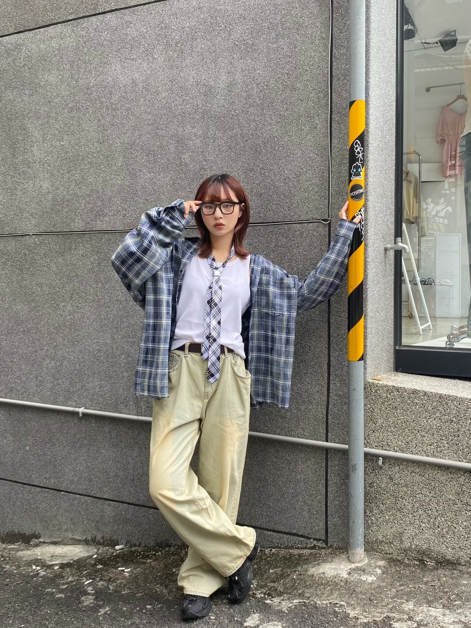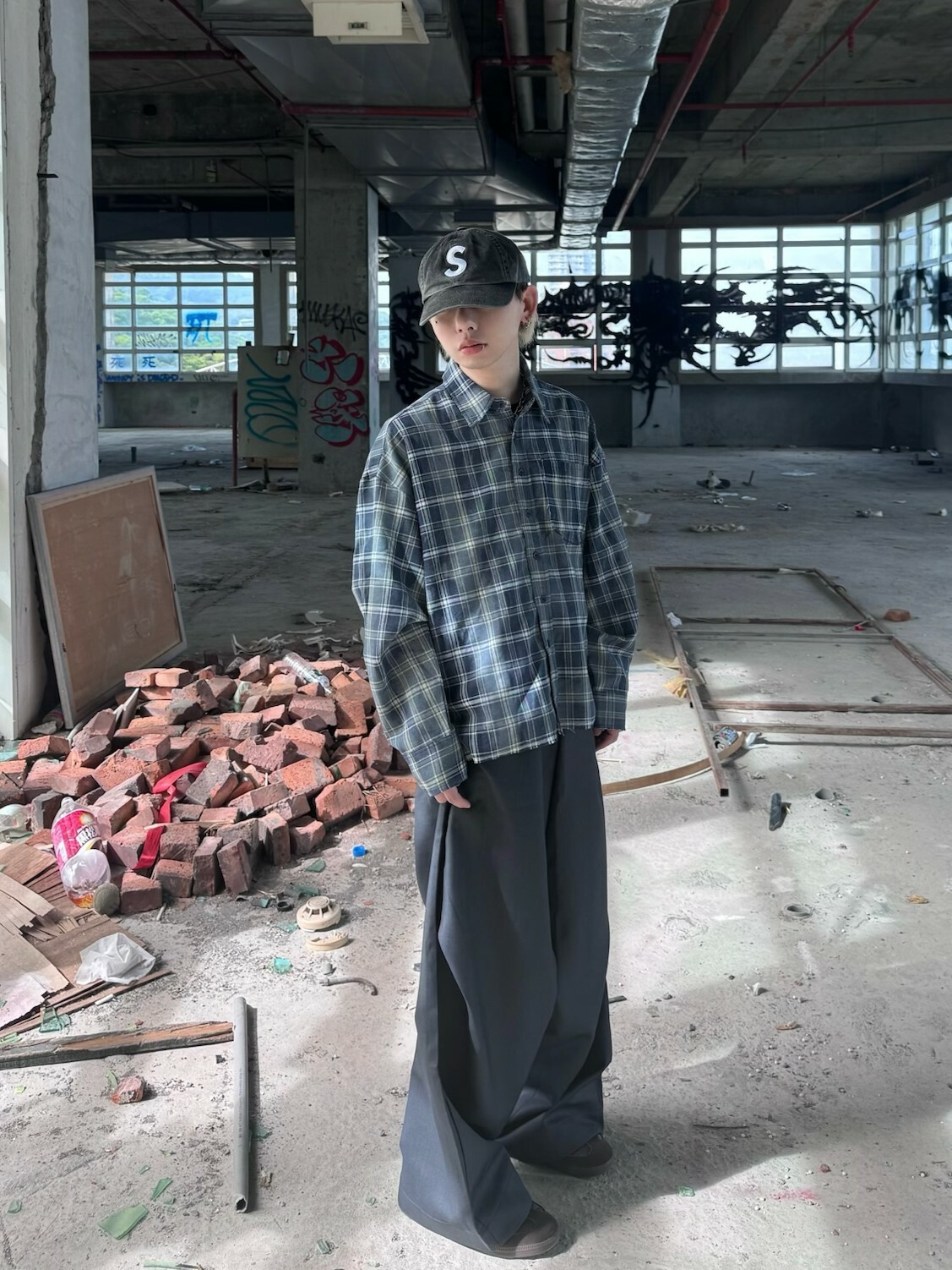 SIMON MADE TL-2420-1 VINTAGE 水洗 做舊 油汙 格紋 襯衫-舊化藍