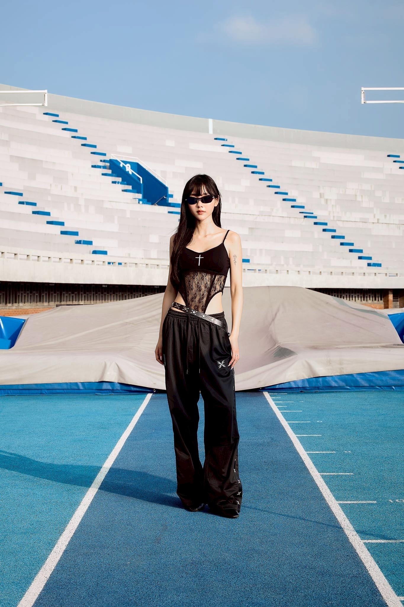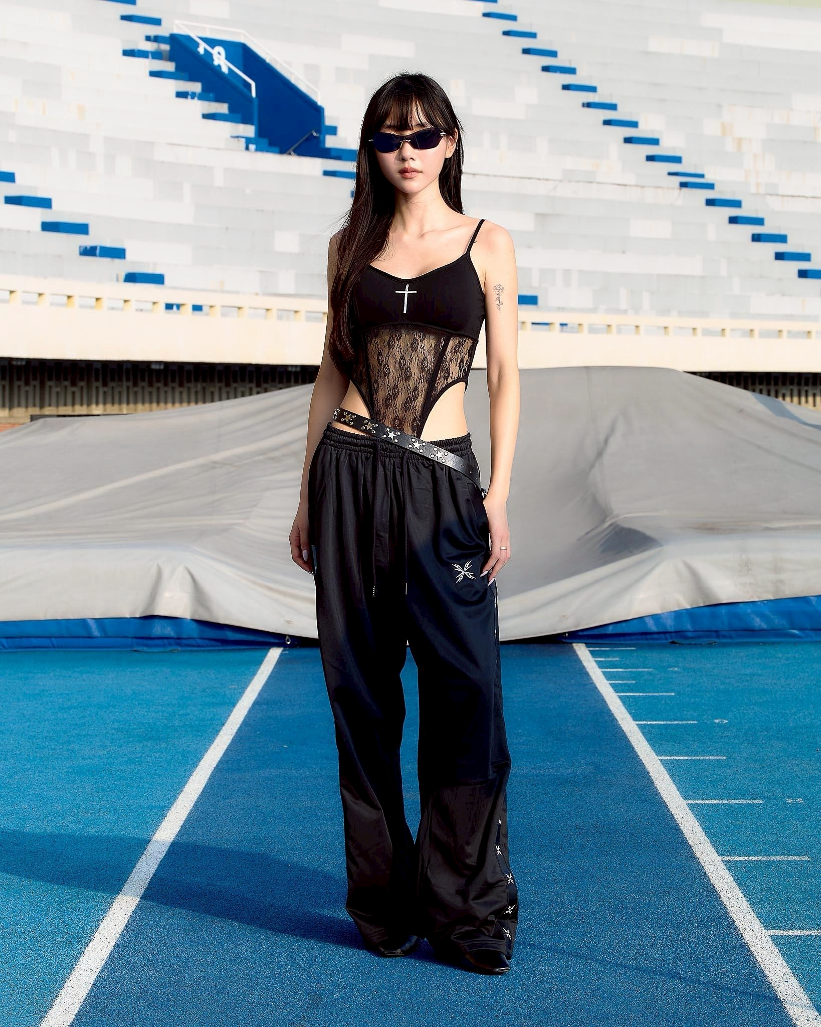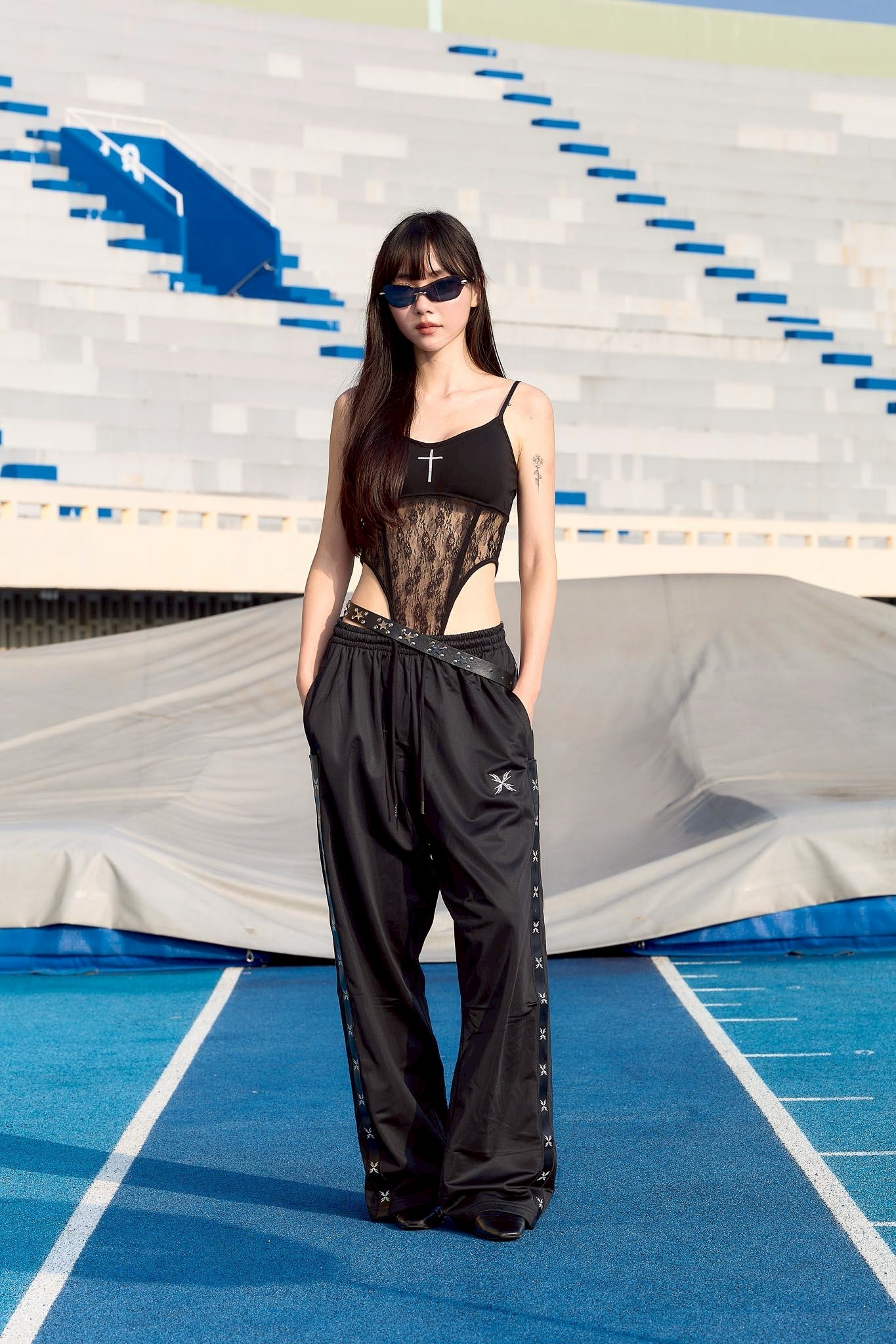 * 上身以棉質面料結合蕾絲透紋結構