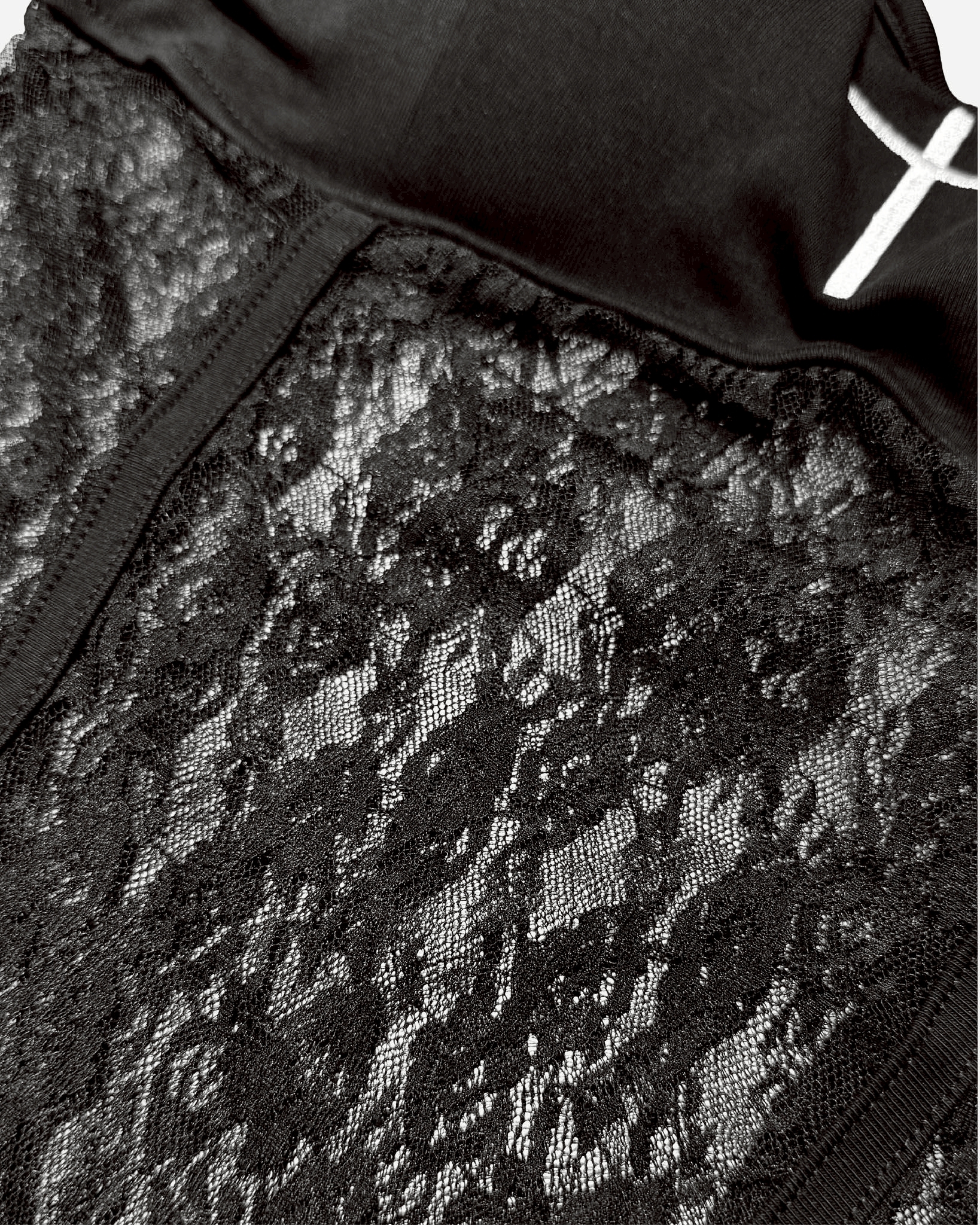 |Slim-contour silhouette with elastic lace for adaptive comfort and visual contrast.