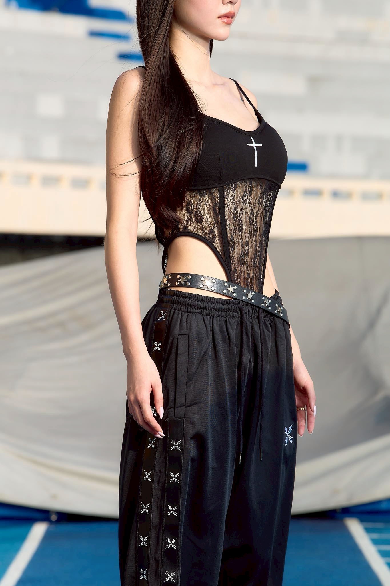 * 採用貼身剪裁與延展蕾絲