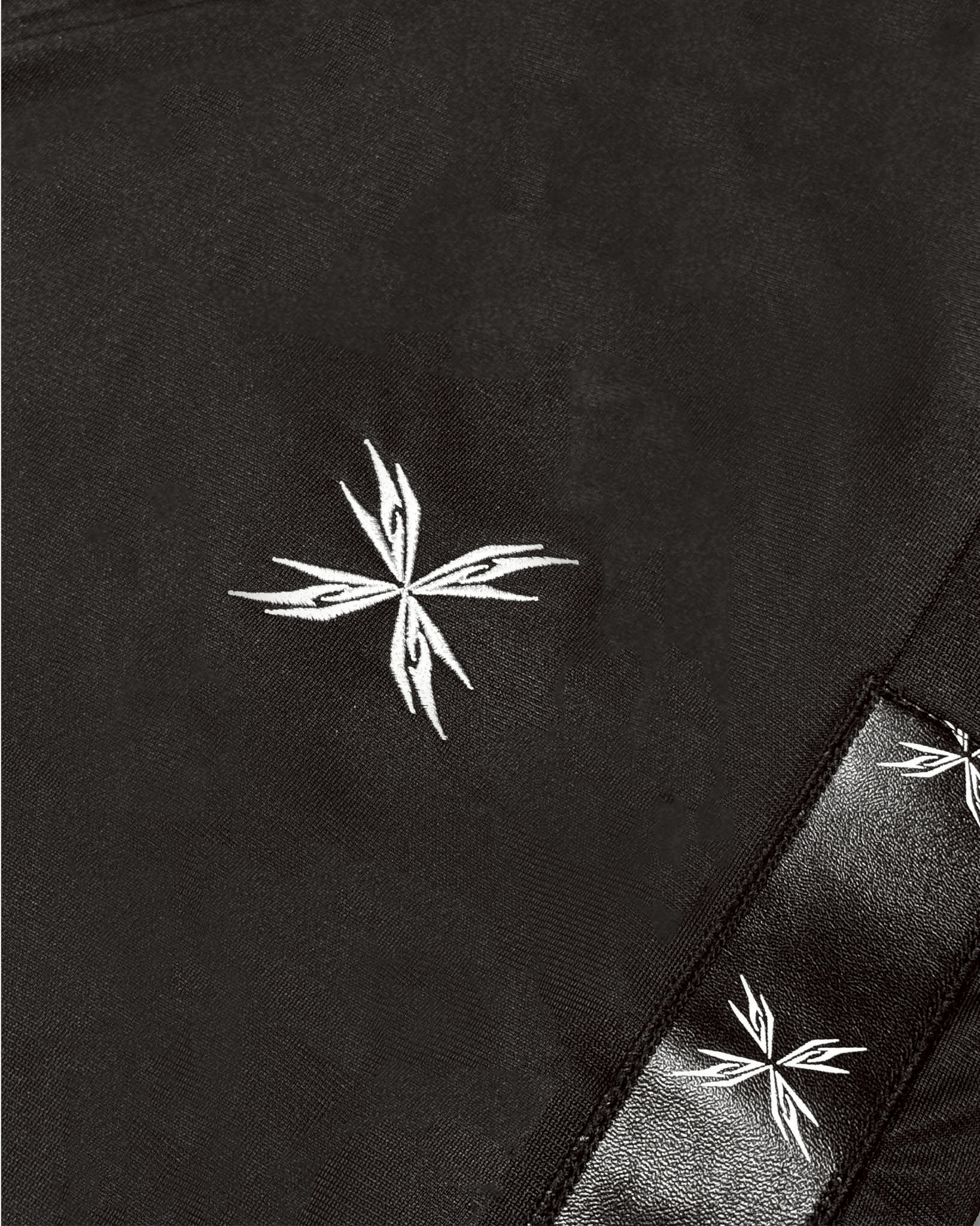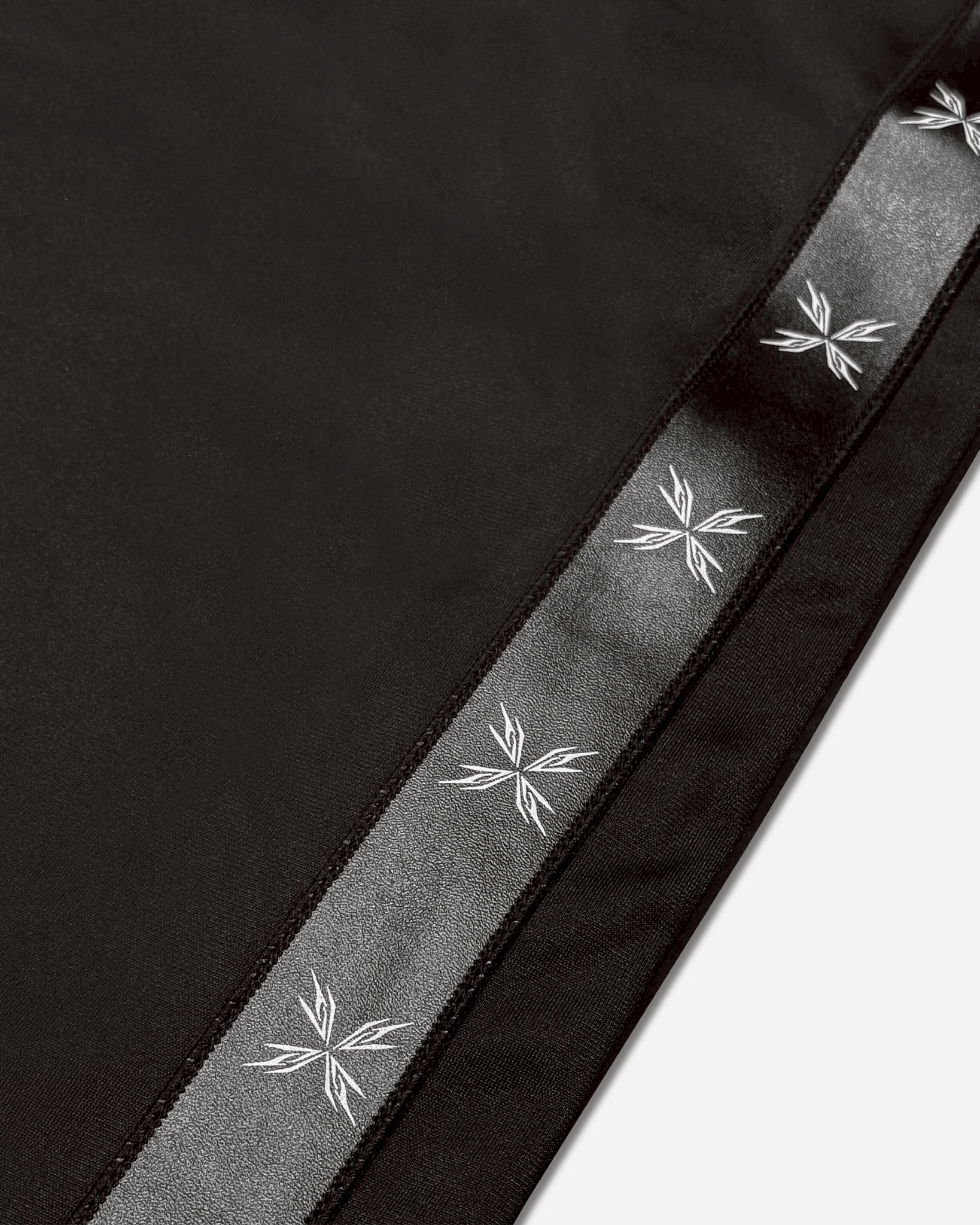 |High-density embroidered emblem positioned at the front thigh.