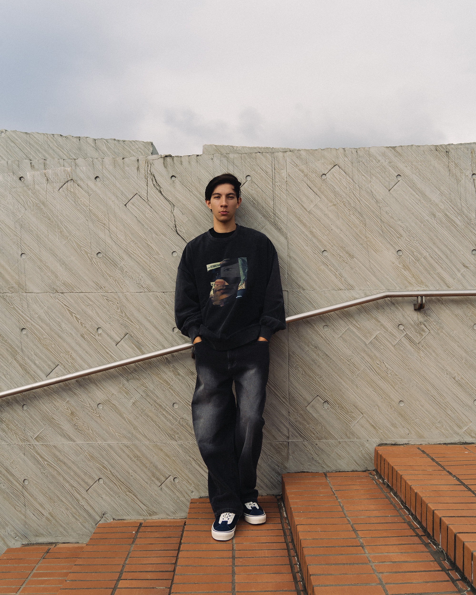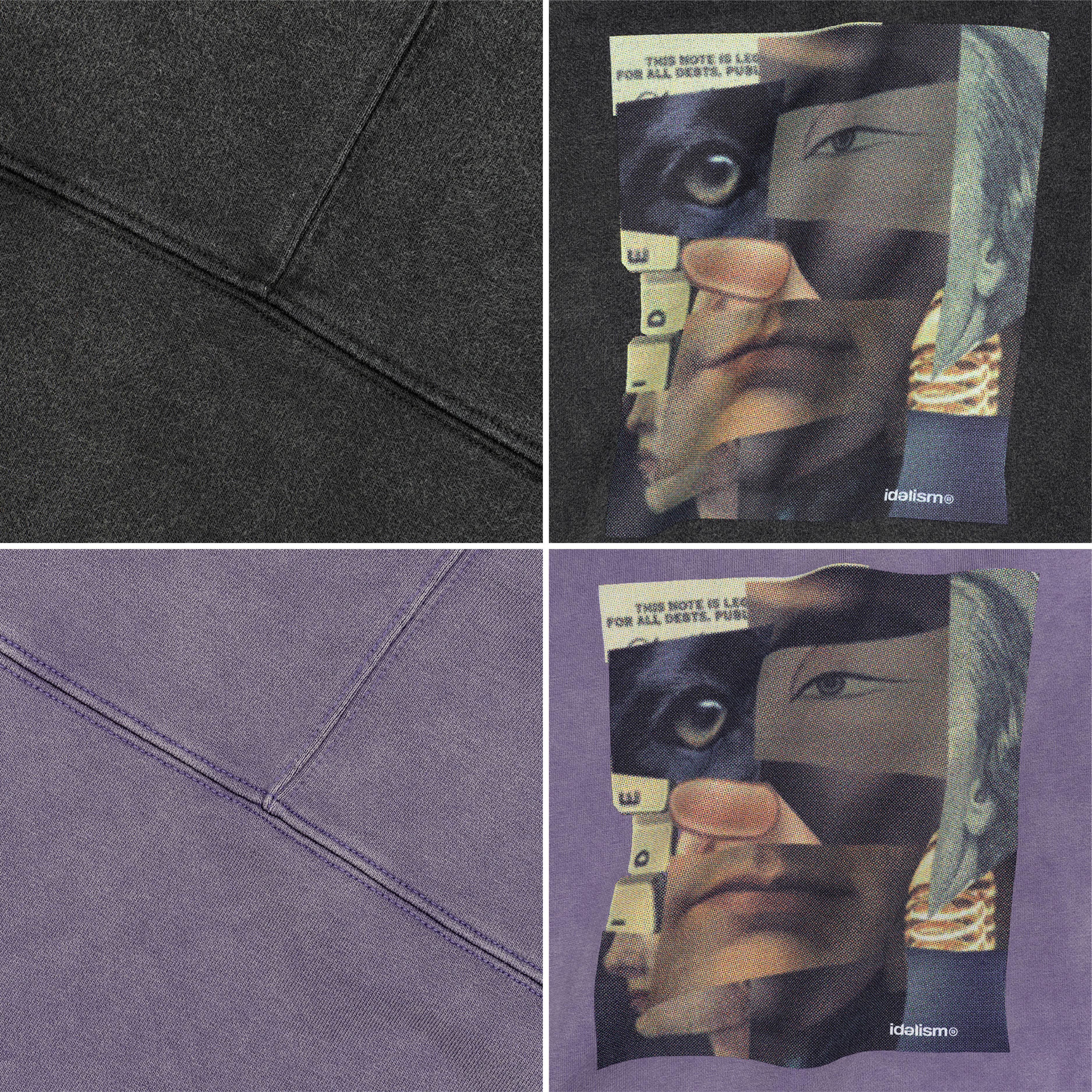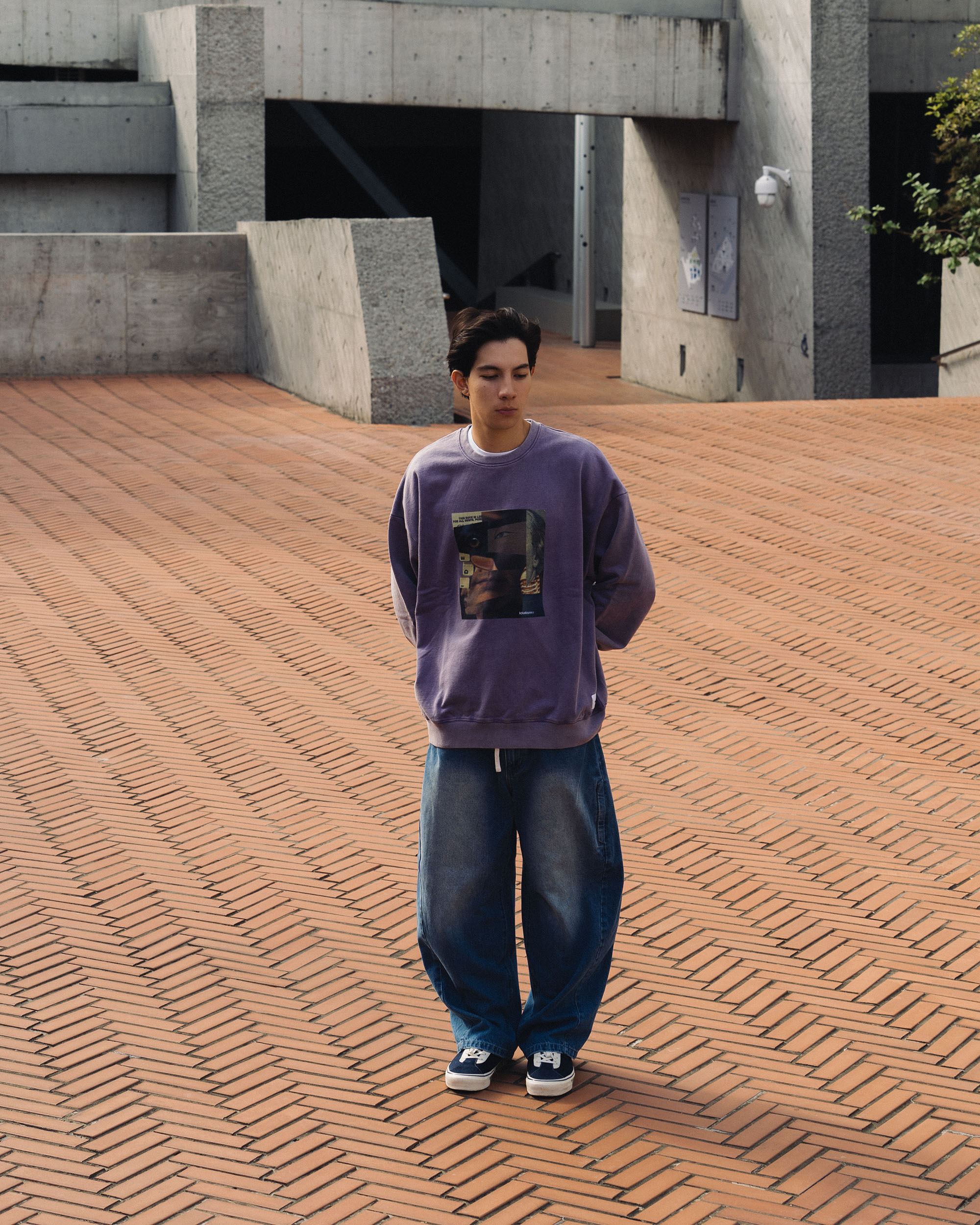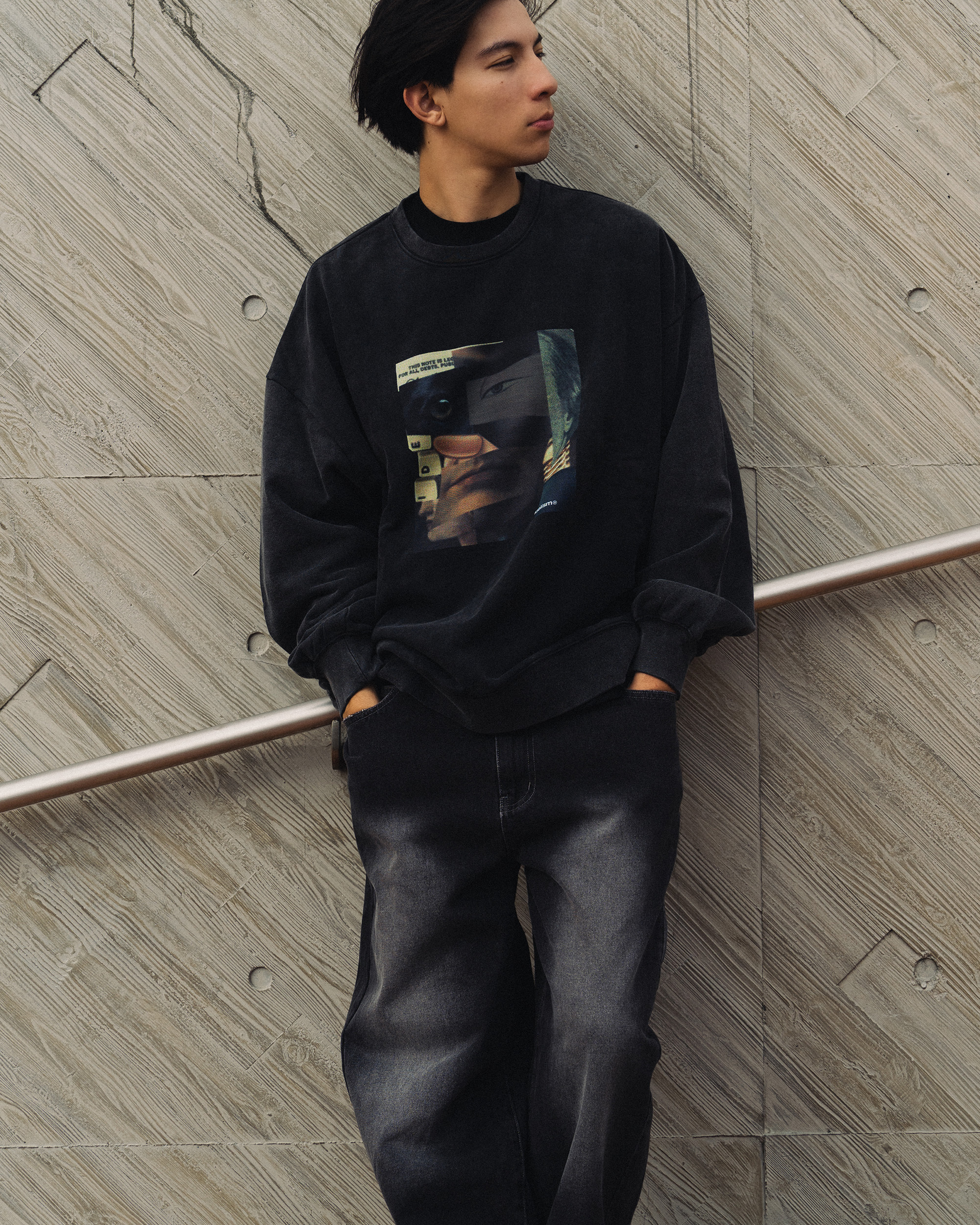 以圖像拼貼為核心視覺,透過碎裂交疊組合,敘述當代資訊爆炸與交錯的狀態細節,拼貼延伸所見而形成主觀意識。水洗工藝為整體加入時間痕跡,柔化略顯尖銳的議題,轉爲經時間鎖封存的過往,靜靜映照虛實交織下的複雜面貌。而回歸日常之中,服裝成為故事的載體,賦予了更多元的想像空間。
