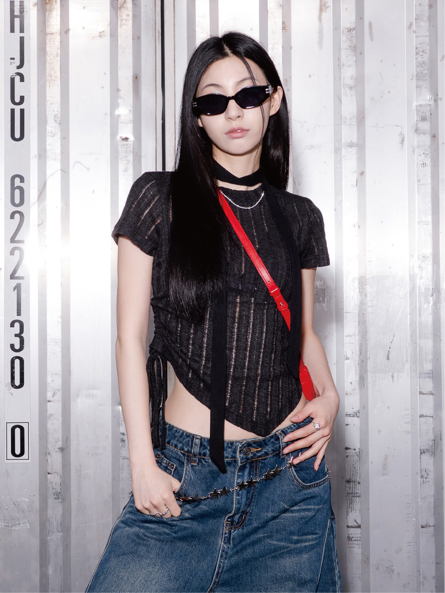 SIMON MADE GC-2505 杯子蛋糕 抽皺 坑條 短T