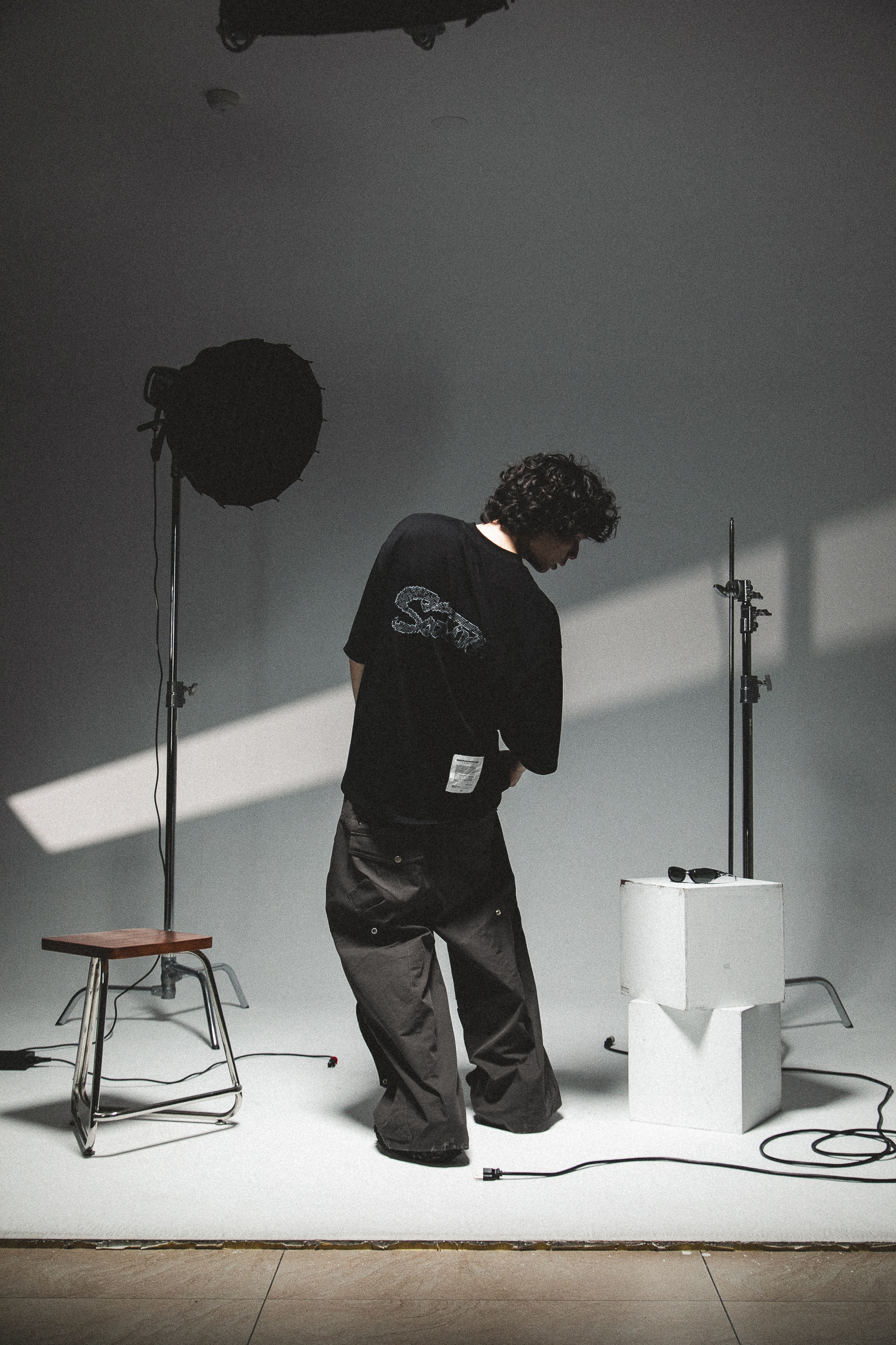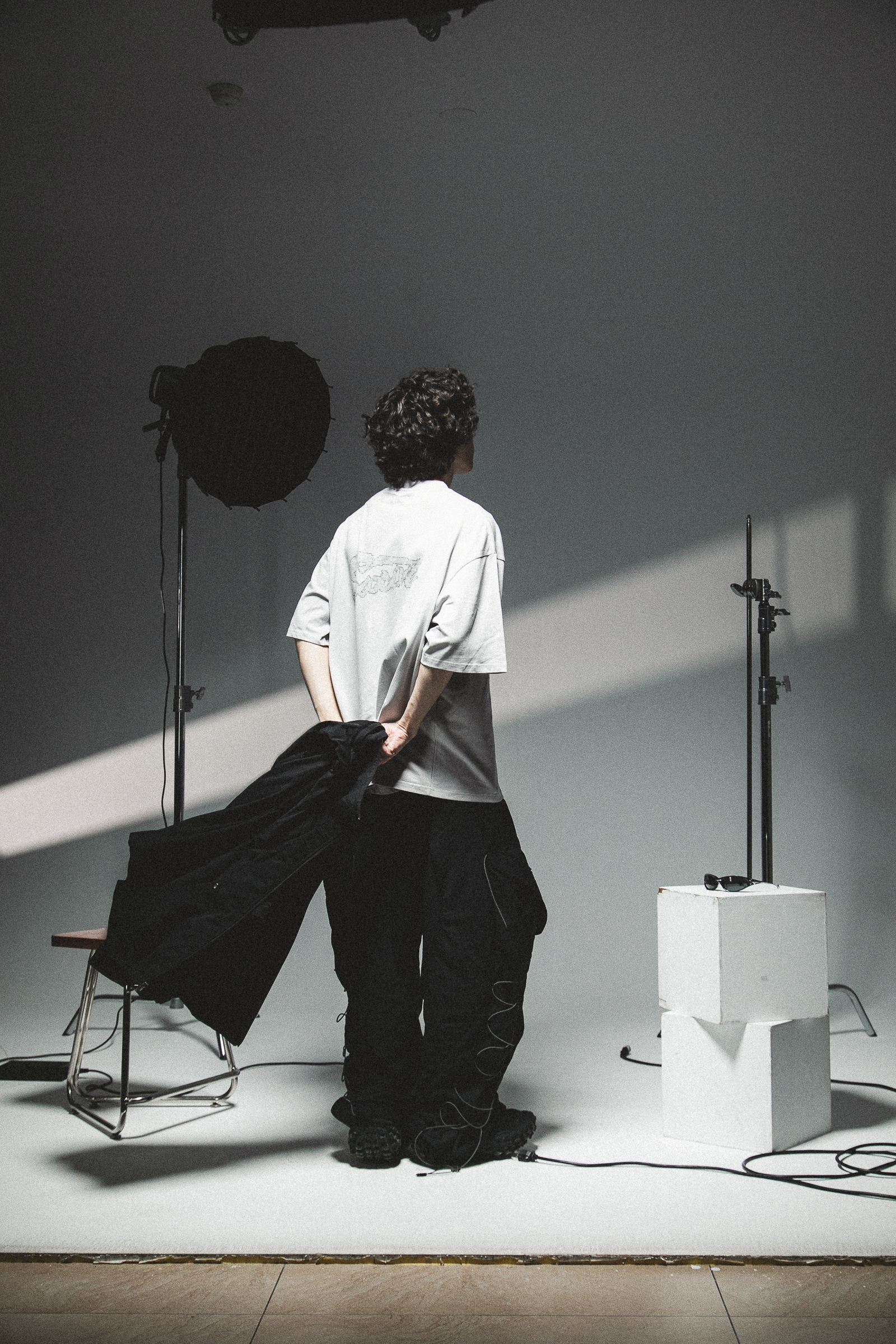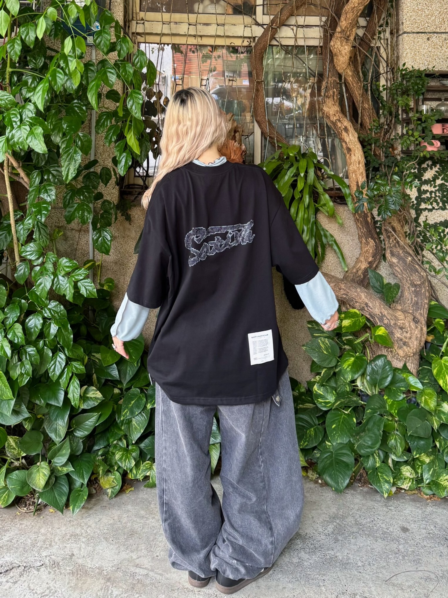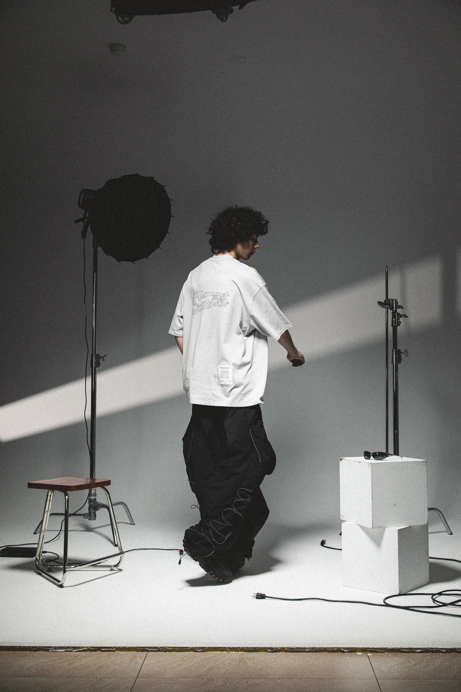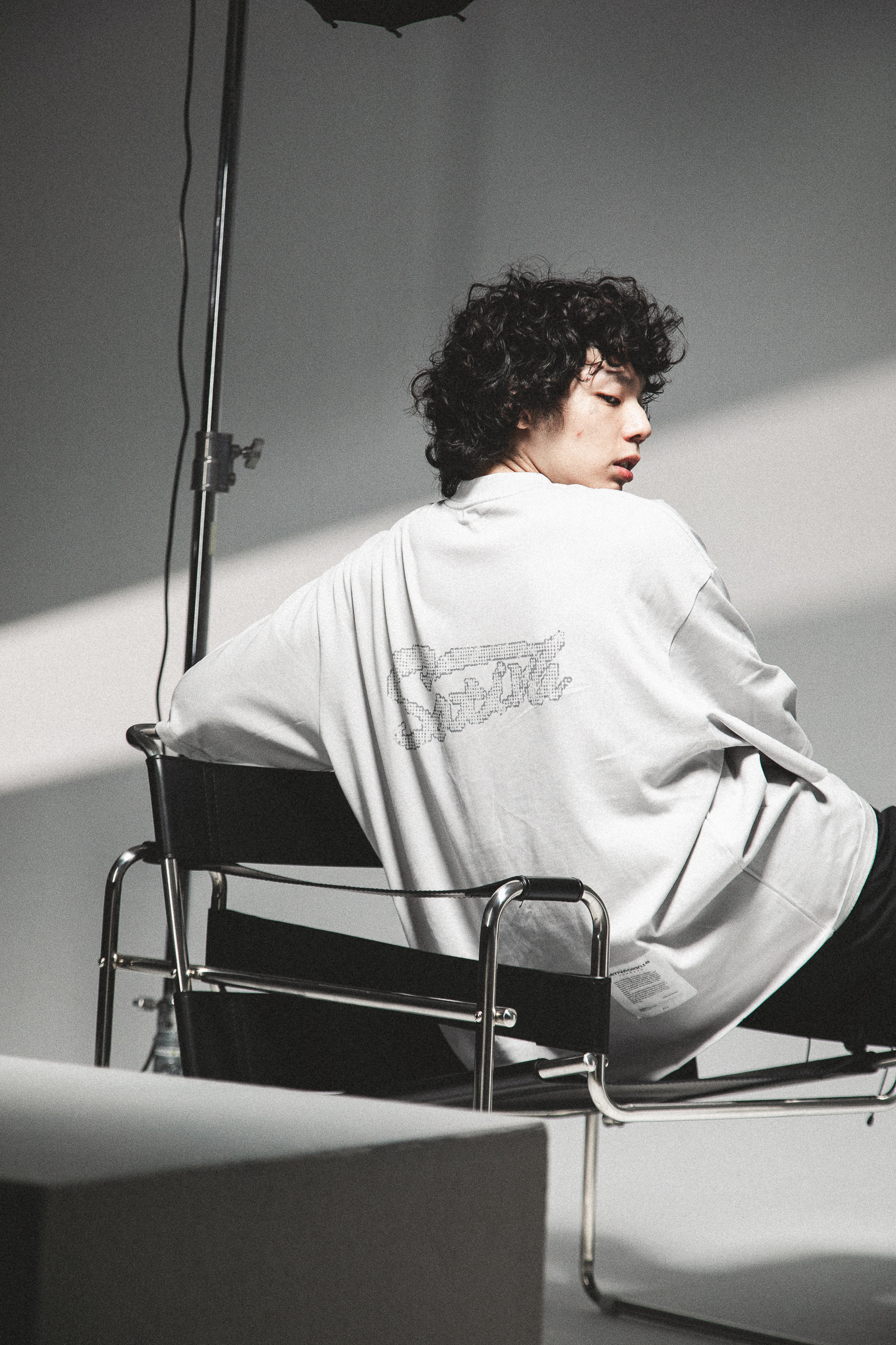 本次作品採100% Cotton舒適透氣面料,在實驗情境中,我們假設穿著者更加注重穿著面料的感受與穿著效果。在這其中,棉質材質更能撐起穿著者的版型需求,同時加深其設計意象。正面主視覺以零星散落的巢狀結構,並以破損效果象徵其特殊性,在穩定的結構中尋求、理解並再製其架構,逐步拼湊屬於自身的認知歸因;後背視覺則以點陣化效果以及品牌泰維克標點綴,作為整體寓意的呈現,藉此暗示SATIVASTUDIO的實驗精神。