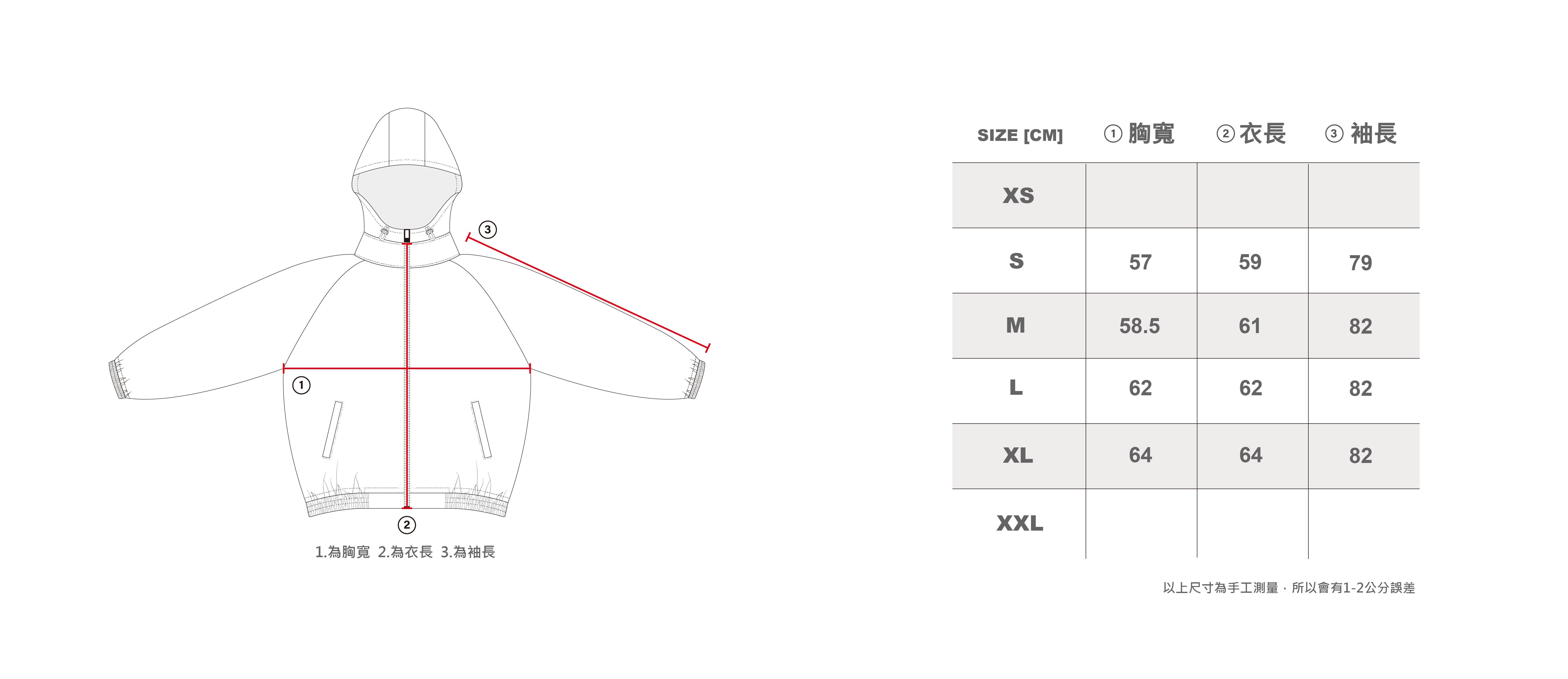 XL:胸寬 64 / 袖長 82 / 衣長 64