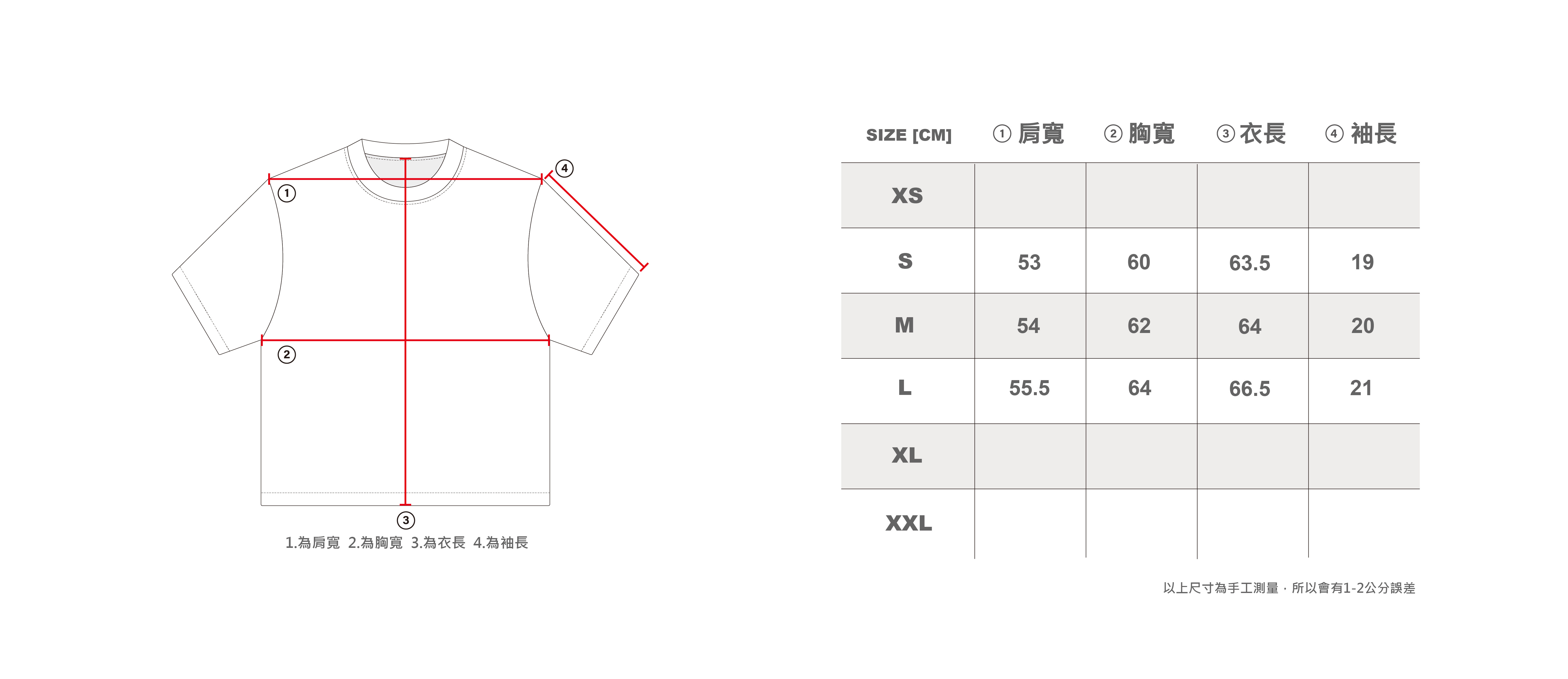 L:肩寬 55.5 / 胸寬 64 / 袖長 21 / 衣長 66.5