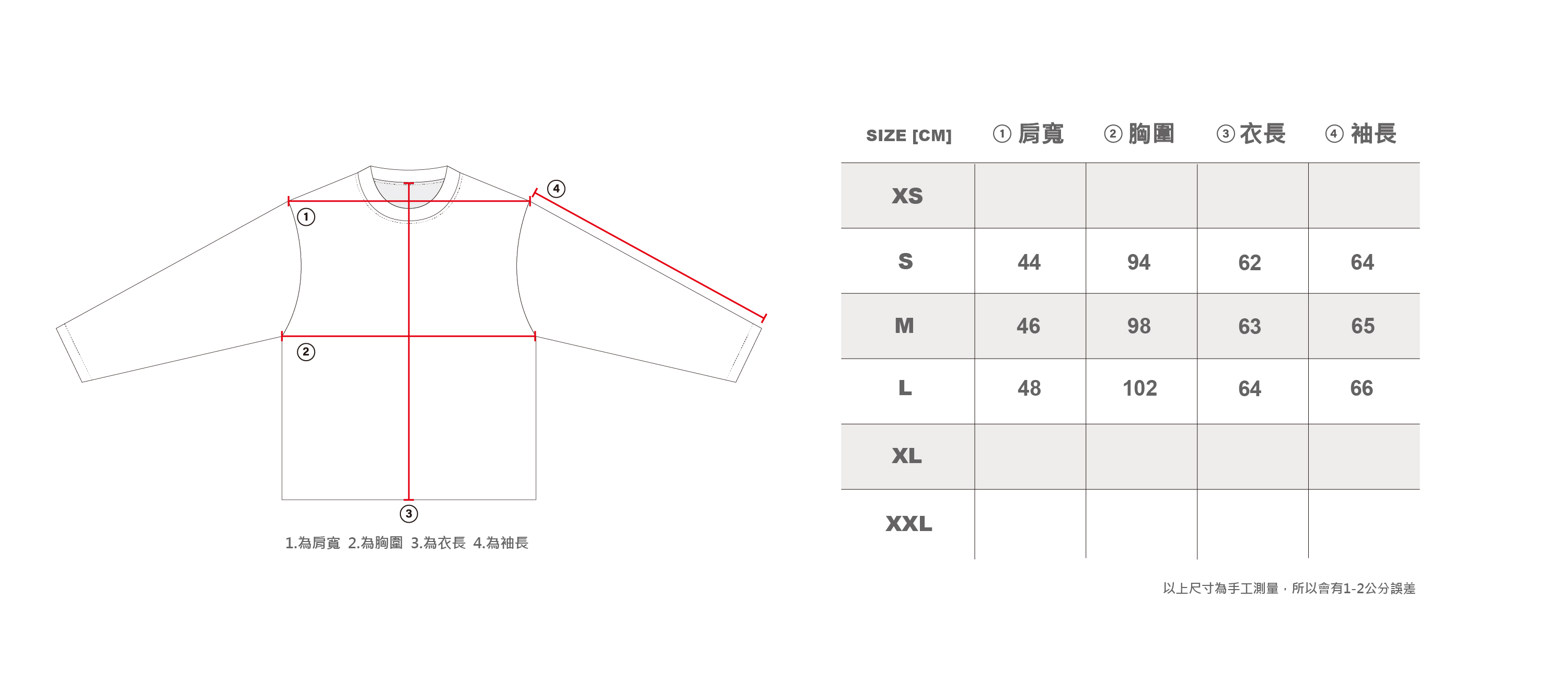 L 肩寬 48 / 胸寬 51 / 袖長 66 / 衣長 64